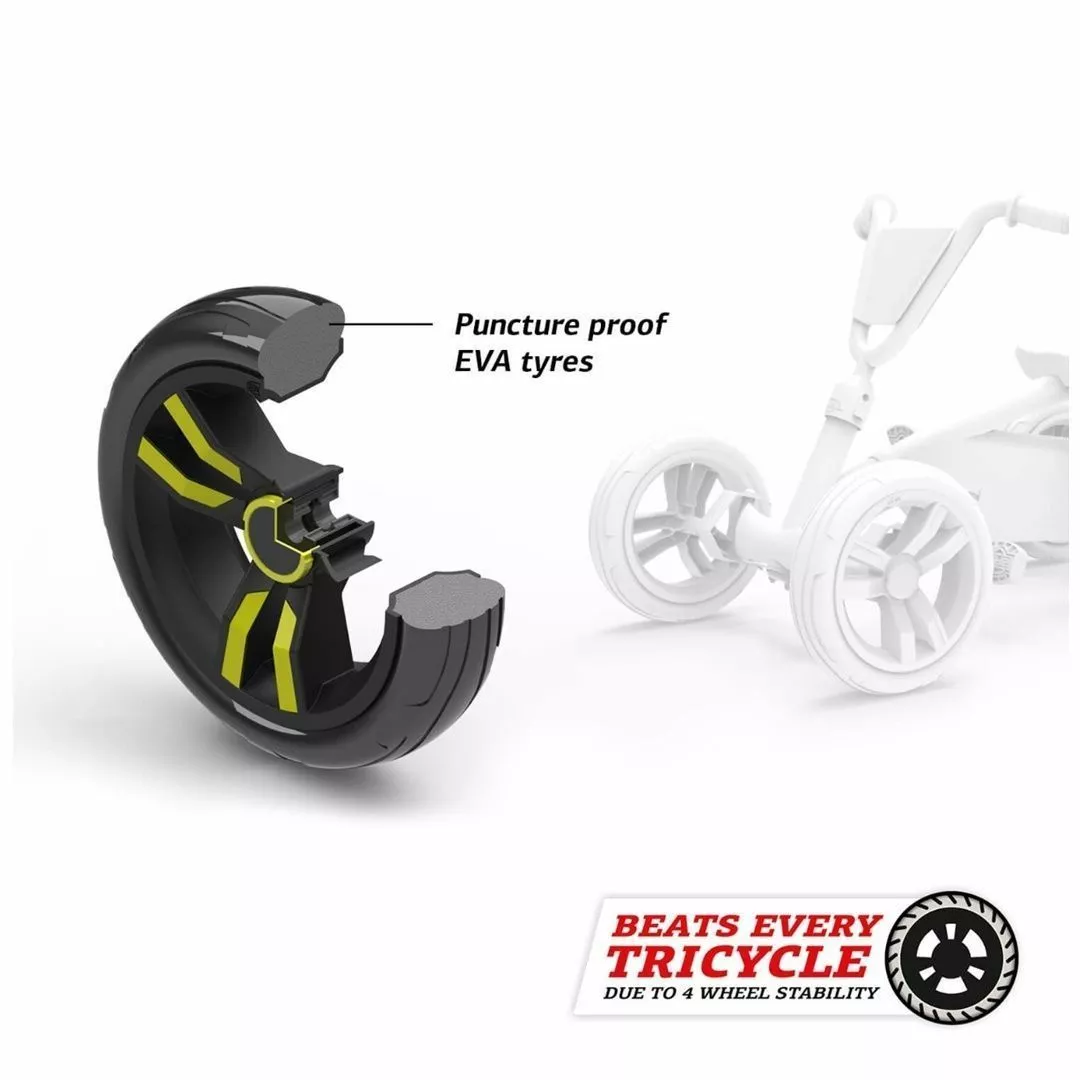 - Ruedas: fabricadas en eva (macizas), por lo que nunca pinchará