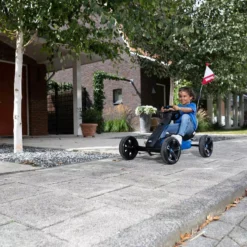 El nuevo coche de pedales Berg Reppy Roadster tiene un moderno y atractivo diseño en color azul eléctrico y negro. Este karts de pedales es válido para niños de 2,5 a 6 años. El volante incorpora el sistema de sonidos “Soundbox”, que reproduce la arrancada del motor, aceleración, frenada y claxon, claro. El asiento regulable en 3 posiciones permite disfrutar de este impresionante bólido durante años.