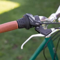 - Puños: de resina en color miel, acorde con el sillín