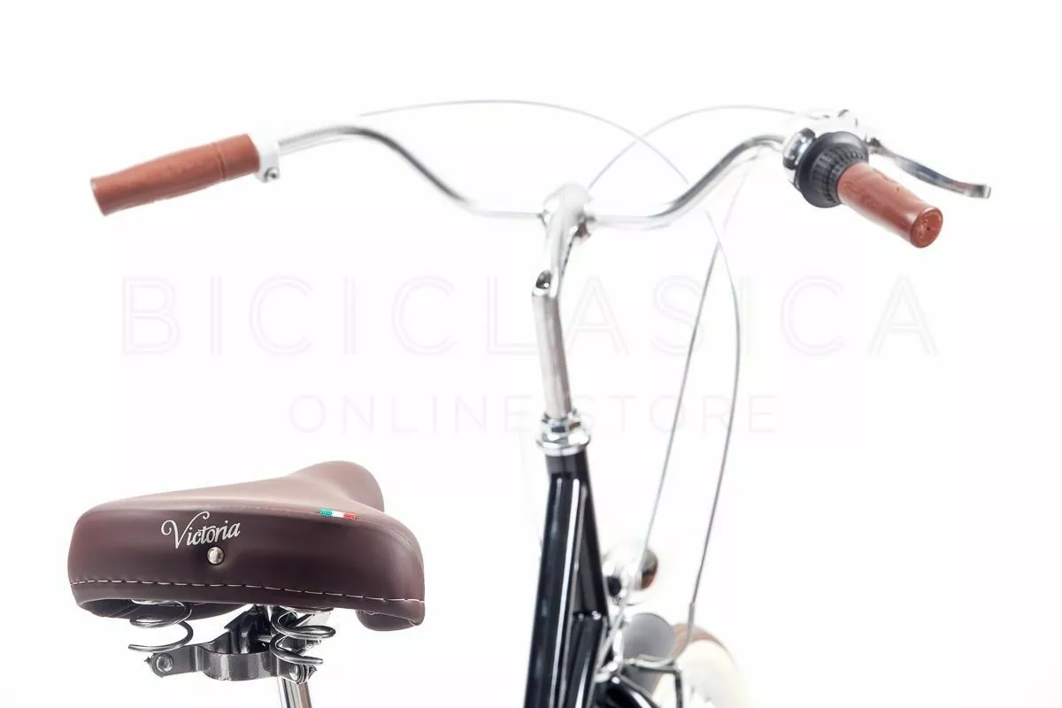 - Sillín: Victoria de muelles, fabricado en semipiel en Italia